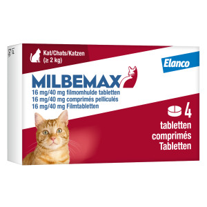 Milbemax ontwormingstabletten kat is een ontwormingsmiddel ter preventie van hartworminfecties en ter behandeling van haakwormen, spoelwormen en lintwormen bij katten zwaarder dan 2 kg.