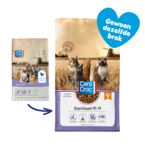 CaroCroc heeft CaroCroc Indoor speciaal voor volwassen binnenkatten. Katten die hun leven binnen doorbrengen hebben een andere energiebehoefte dan katten die veel buiten rennen en jagen. Met speciaal aangepast voedsel is de kans op onder andere overgewicht een stuk kleiner. Ook katten die zijn gesteriliseerd of gecastreerd hebben een andere energiebehoefte. Met een aangepaste voeding, zoals CaroCroc Sterilised, ondersteunt u een gezond gewicht, terwijl de spieren worden behouden.