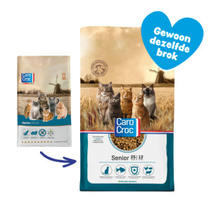 CaroCroc Senior kattenvoer is een complete voeding voor senior katten (vanaf 8 jaar) van alle rassen. Zodra uw kat ouder wordt veranderen de voedingsbehoeften. Het is dan belangrijk dat het voer van uw kat hierop afgestemd is. Zo bevat het voer een verlaagd gehalte aan eiwitten, vetten en mineralen, waardoor de belasting van de lever, nieren en het spijsverteringsstelsel vermindert. De zeer smakelijke voeding is gemaakt met lam en rijst, waardoor de kans op overgevoeligheidsreacties aanzienlijk kan verminderen.