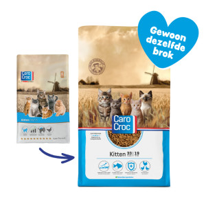 CaroCroc heeft een een complete voeding voor kittens (< 12 maanden) van alle rassen. De voeding is afgestemd op de ontwikkeling van de botten, tanden en spieren van uw kitten. CaroCroc Kitten zorgt ervoor dat uw kat gezond op kan groeien, waardoor een goede basis wordt gelegd voor een gezond en vitaal leven.