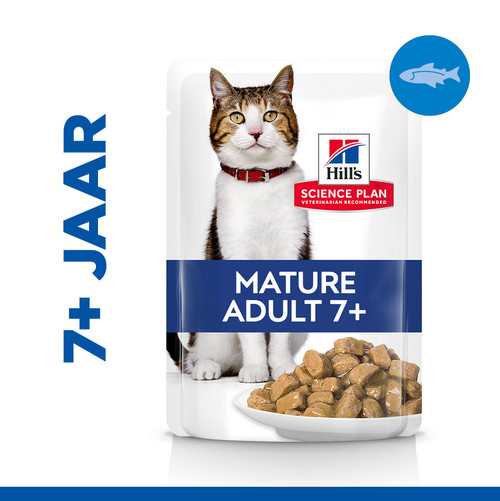 Hill's Mature Adult 7+ nat kattenvoer met zeevis is een uitgebalanceerde voeding, speciaal ontwikkeld voor oudere katten om hun vitaliteit en gezondheid te ondersteunen.