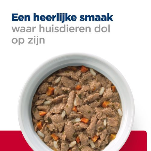 Hill's Prescription Diet C/D Multicare Stress Urinary Care stoofpotje voor kat met kip & toegevoegde groenten is dieetvoer dat bedoeld is voor katten met urinewegproblemen.