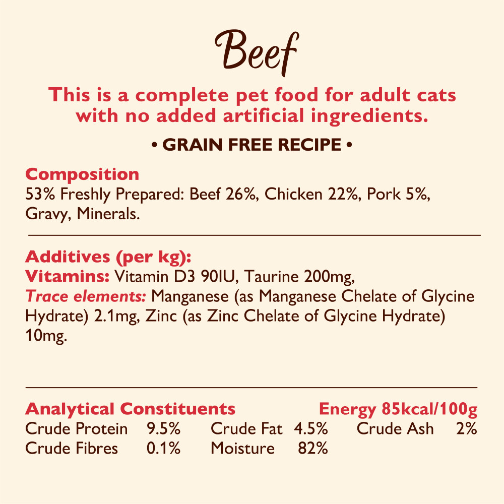 Let op: De maaltijden van Lily's Kitchen zijn graanvrij, maar worden gemaakt in een fabriek waar granen worden verwerkt. Het voer kan daardoor sporen van graan bevatten.