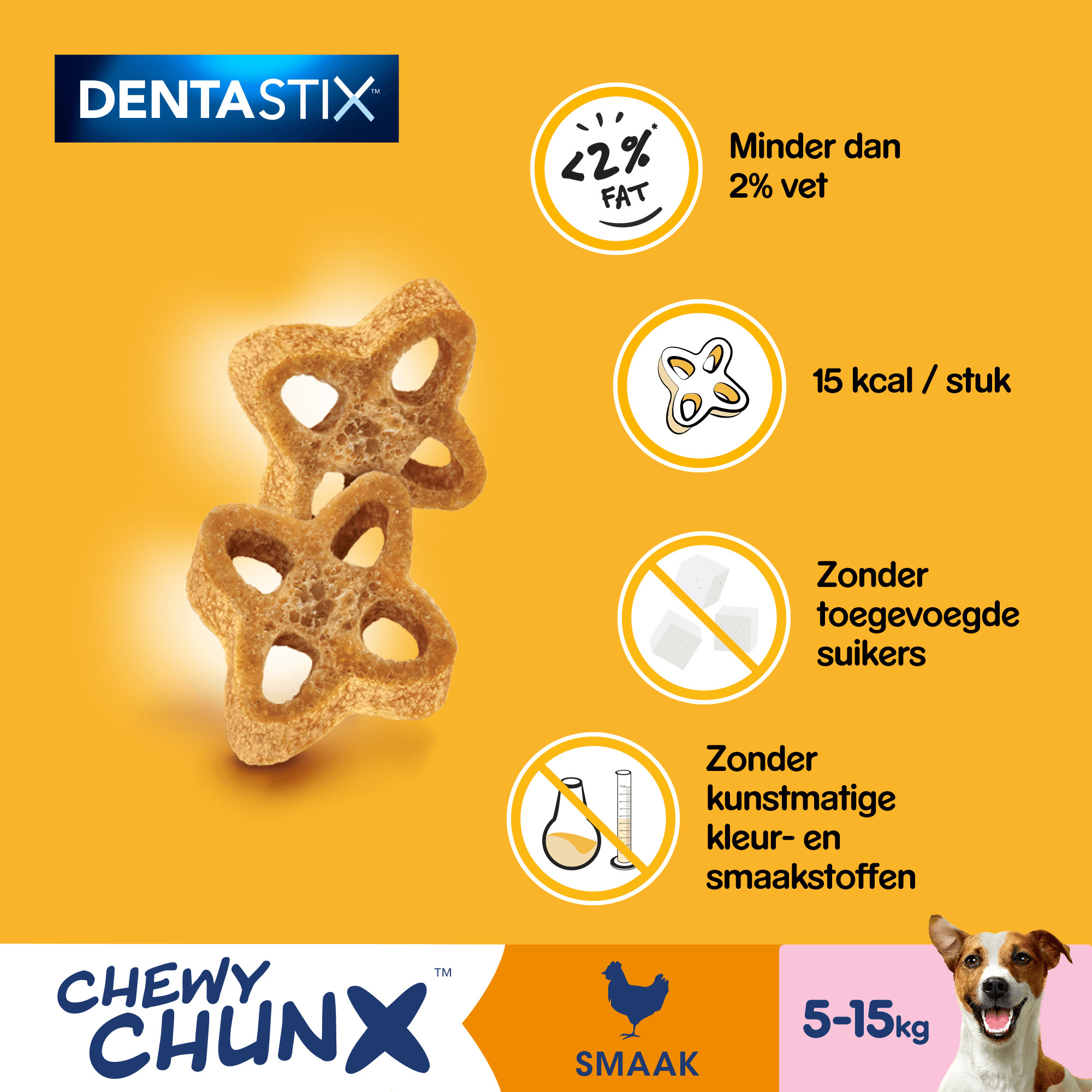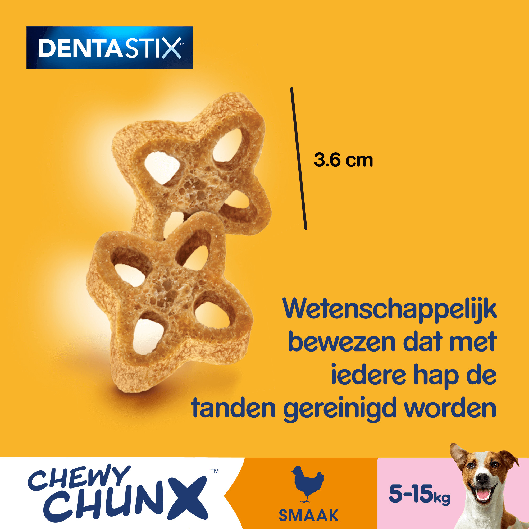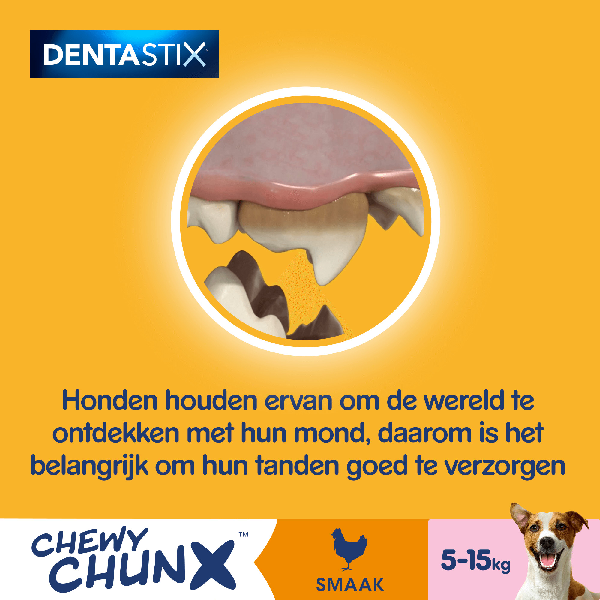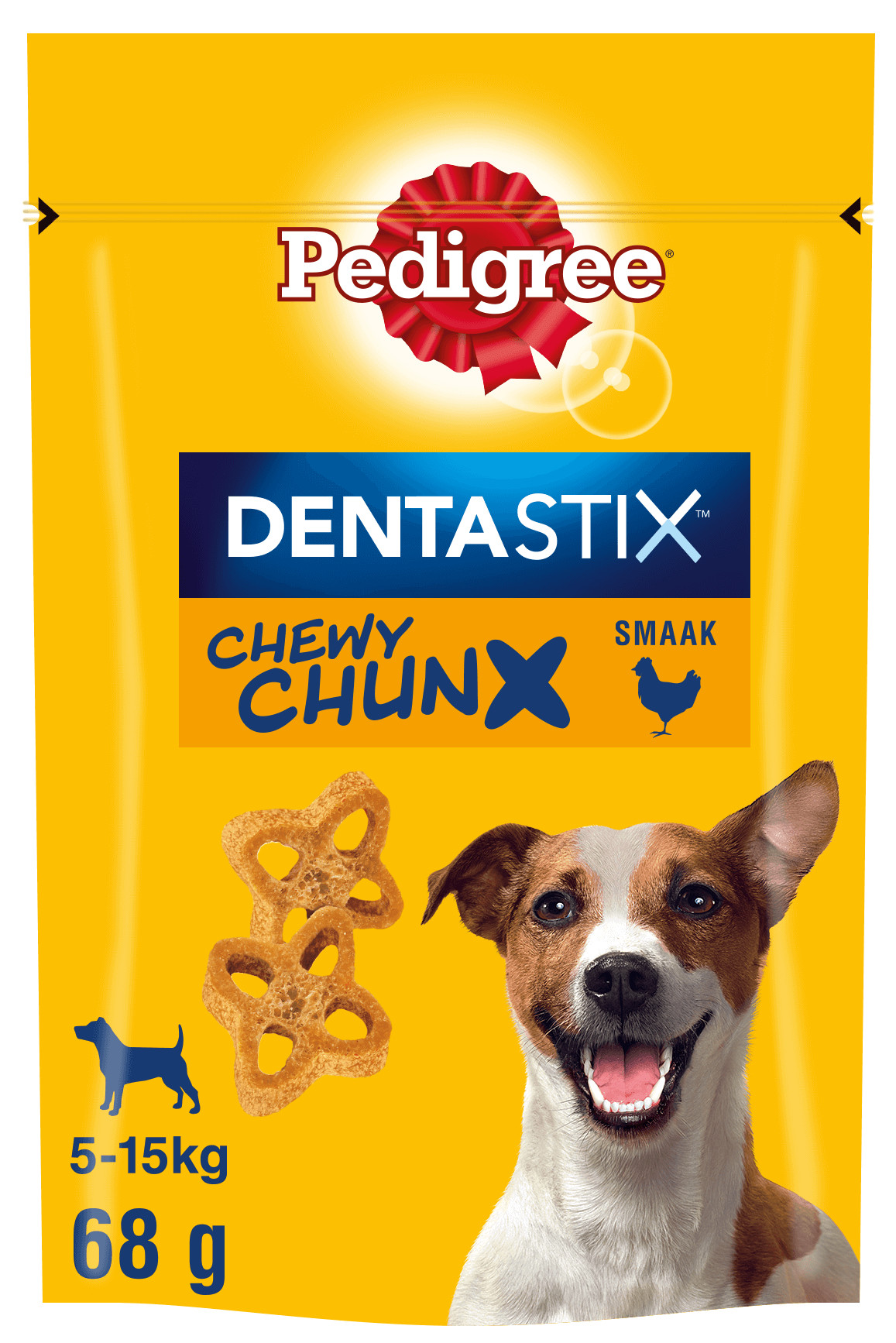 Pedigree Dentastix Chewy Chunx hondensnack mini kipsmaak (68 gram) is een heerlijk gebitsverzorgend tussendoortje dat helpt bij het reinigen van de tanden.