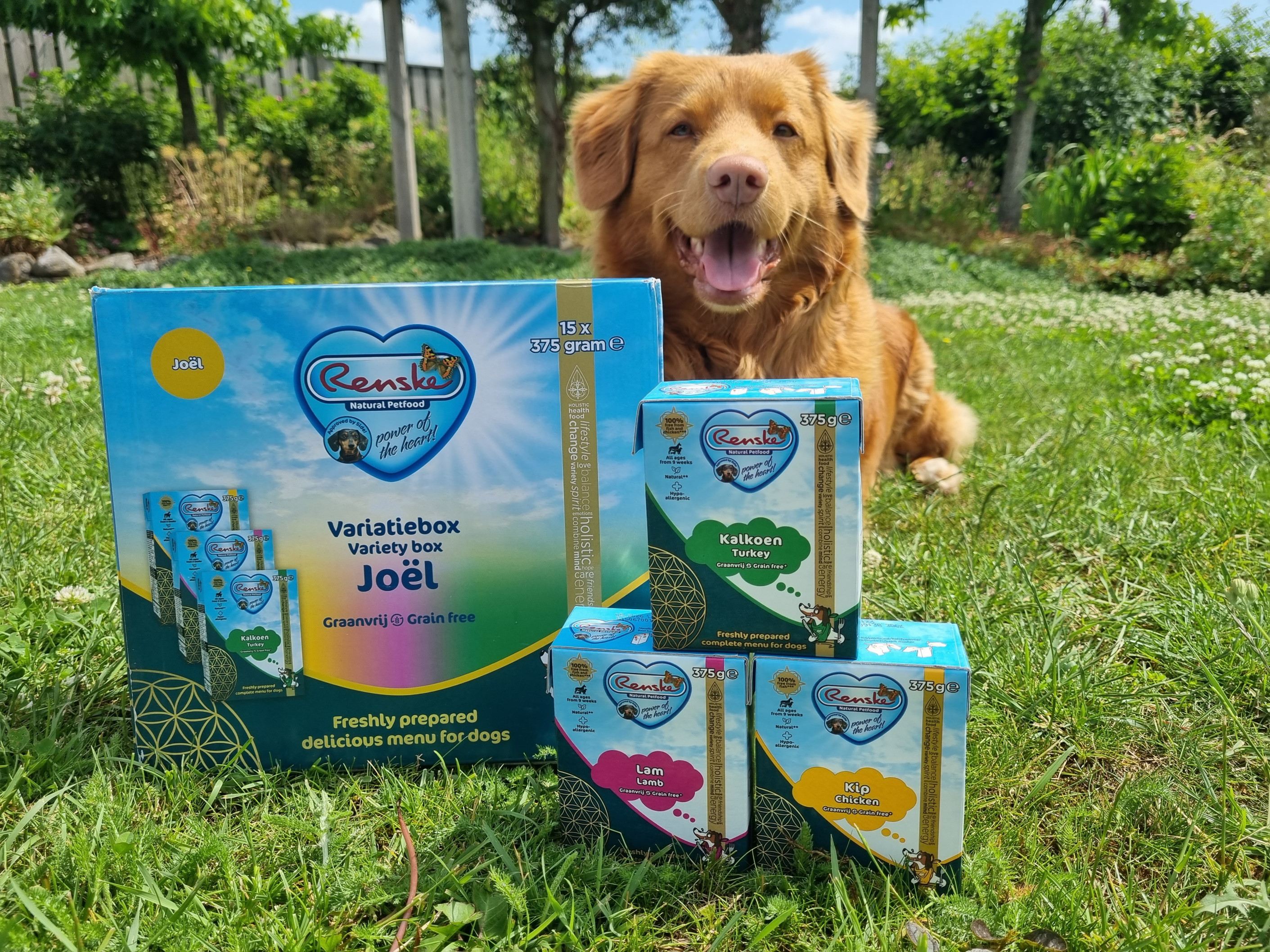 Renske Variatiebox Joël Graanvrij vers bereid natvoer hond (tetra) is een handige combiverpakking om eenvoudig af te wisselen tussen diverse maaltijden.