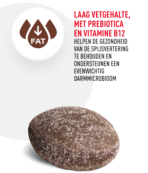 Samenstelling: rijstmeel, gedehydreerde gevogelte-eiwitten, glycerol, gerstemeel, tarwegluten, dierlijke vetten, gehydrolyseerde dierlijke eiwitten, cellulosepoeder, mineralen, fructo-oligosachariden, gist (bron van manno-oligosachariden).