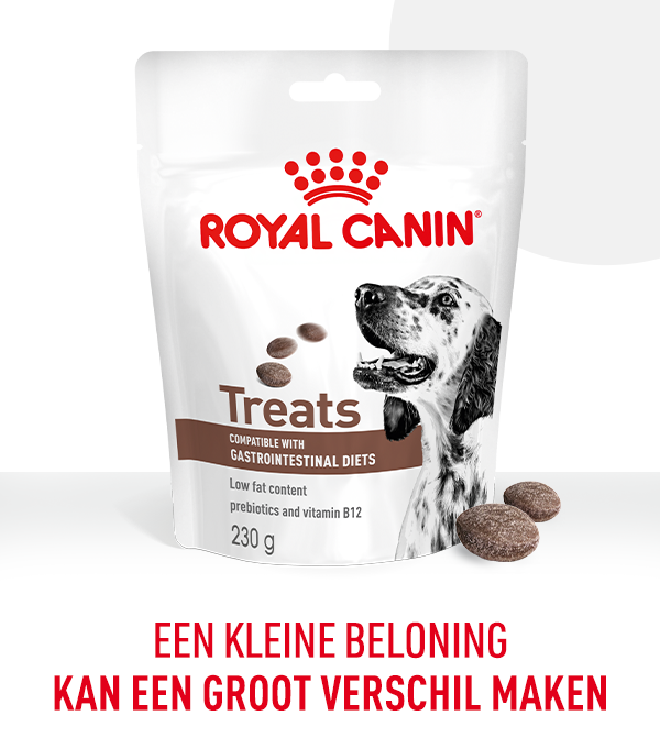 Royal Canin Gastrointestinal Treats hondensnack zijn zachte tussendoortjes die zeer goed passen bij het Royal Canin Veterinary dieet. Deze tussendoortjes zijn geschikt voor honden vanaf 3 maanden oud. Ze hebben een laag vetgehalte en zijn ontwikkeld met prebiotica en vitamine B12, waardoor ze een geschikte keuze zijn ter ondersteuning van de spijsvertering van de hond. De Royal Canin Gastrointestinal Treats combineert u met de volgende voedingen van Royal Canin Veterinary: