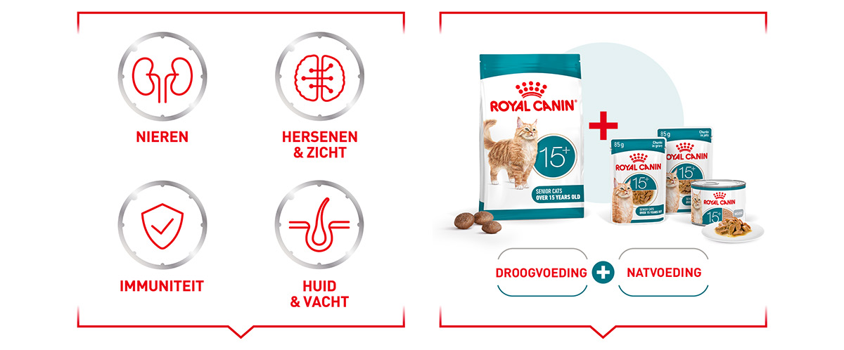 Tip: Combineer met Royal Canin Ageing 15+ natvoer in saus