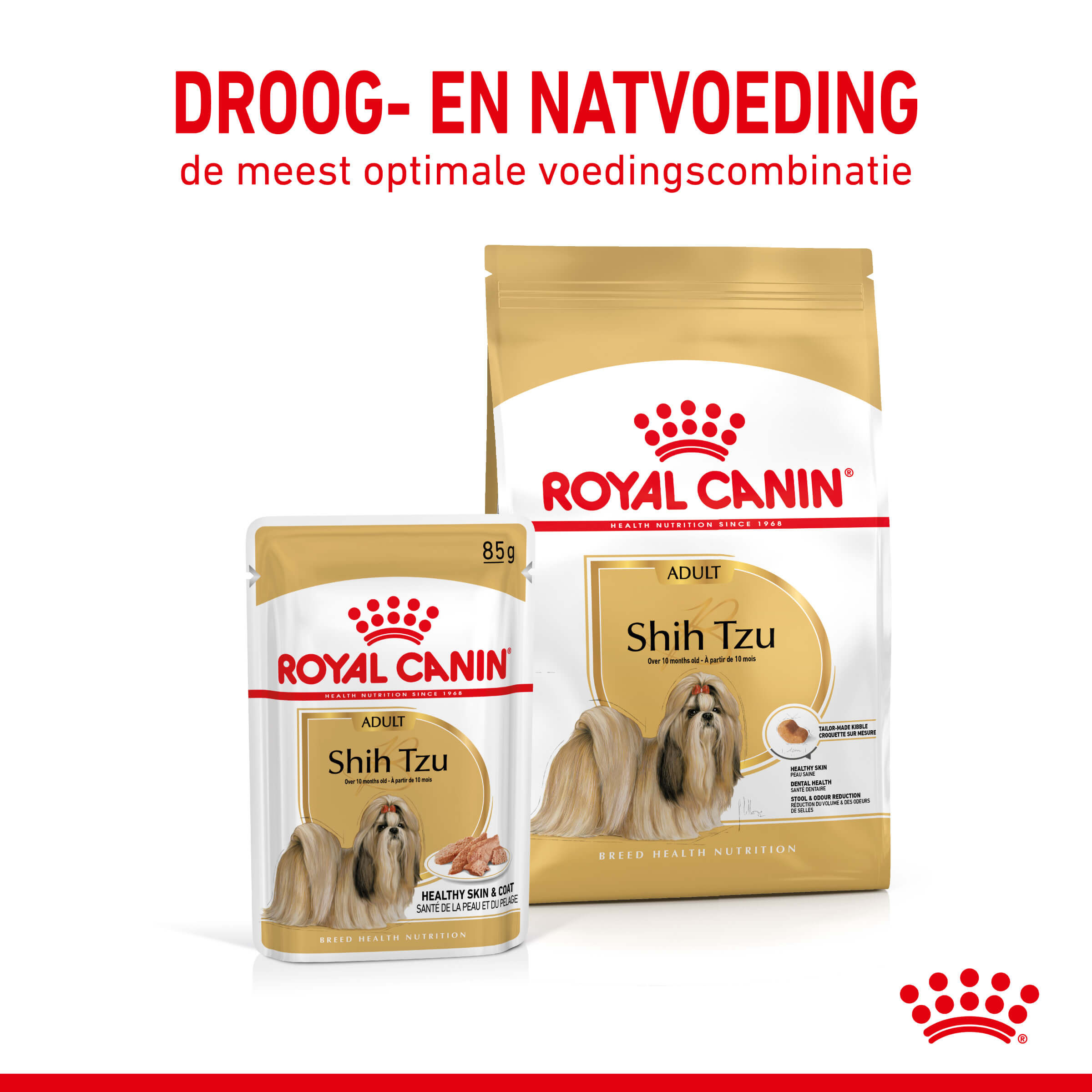 Royal Canin Adult Shih Tzu natvoer (zakjes 85 gram) is een rasspecifiek natvoer voor de Shih Tzu vanaf 10 maanden.