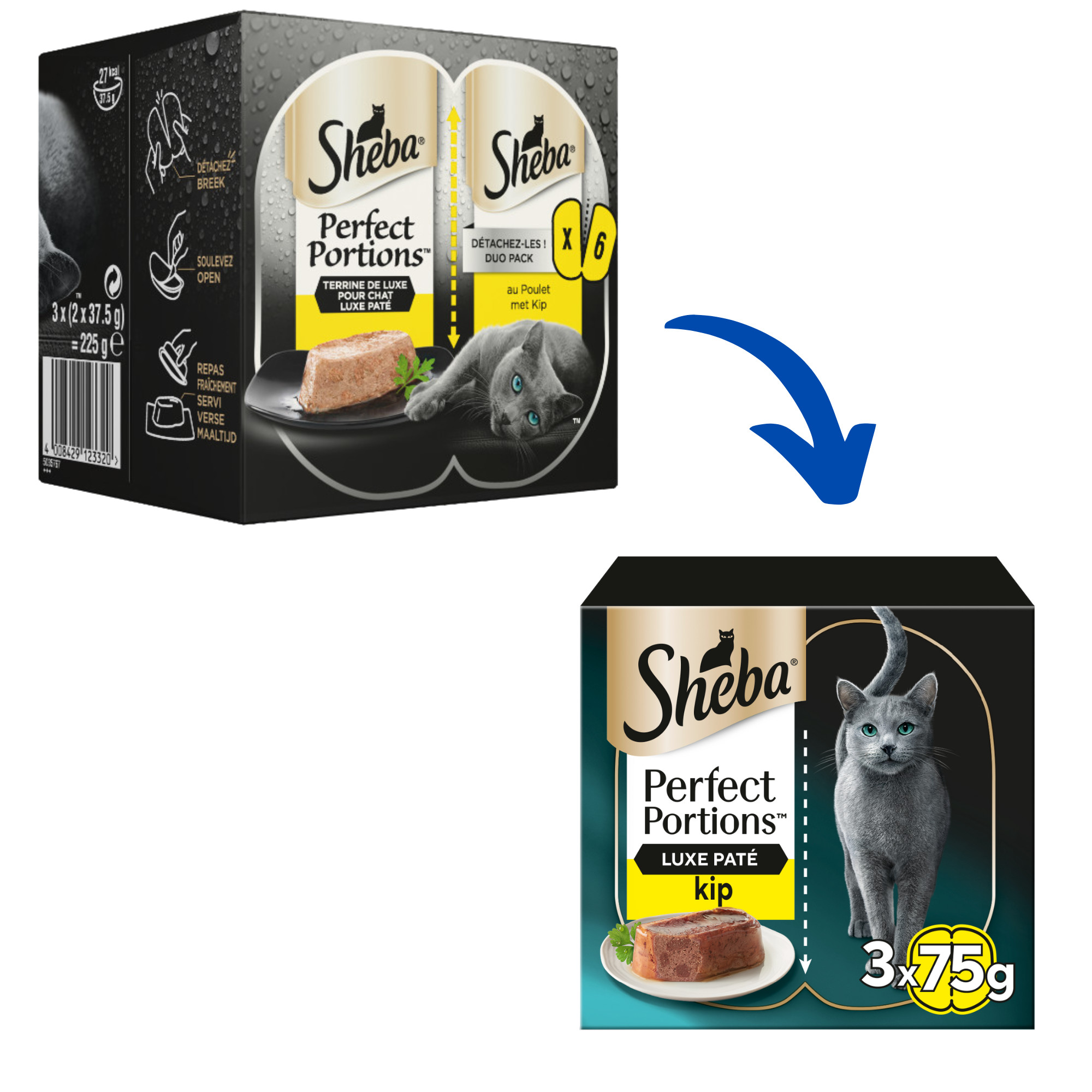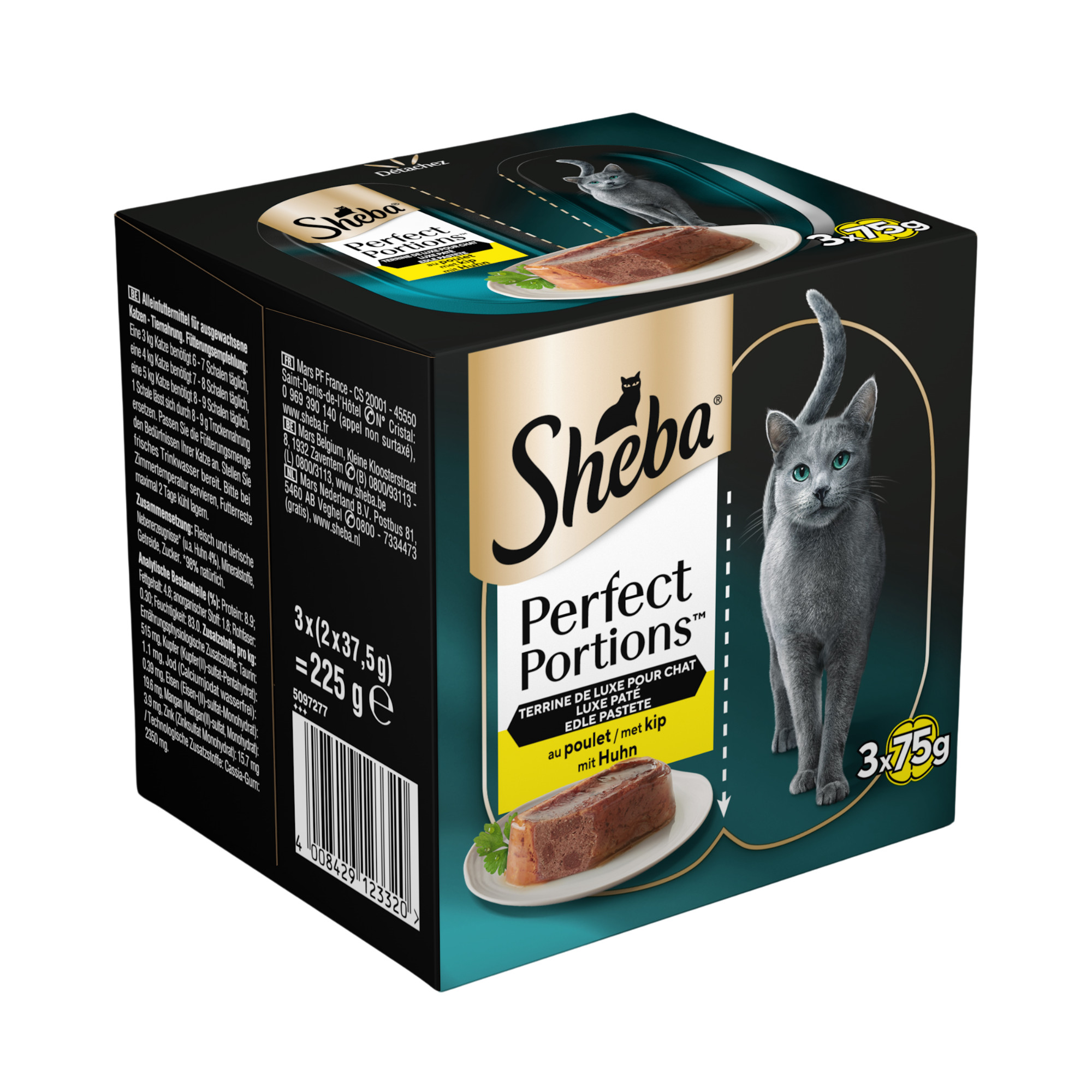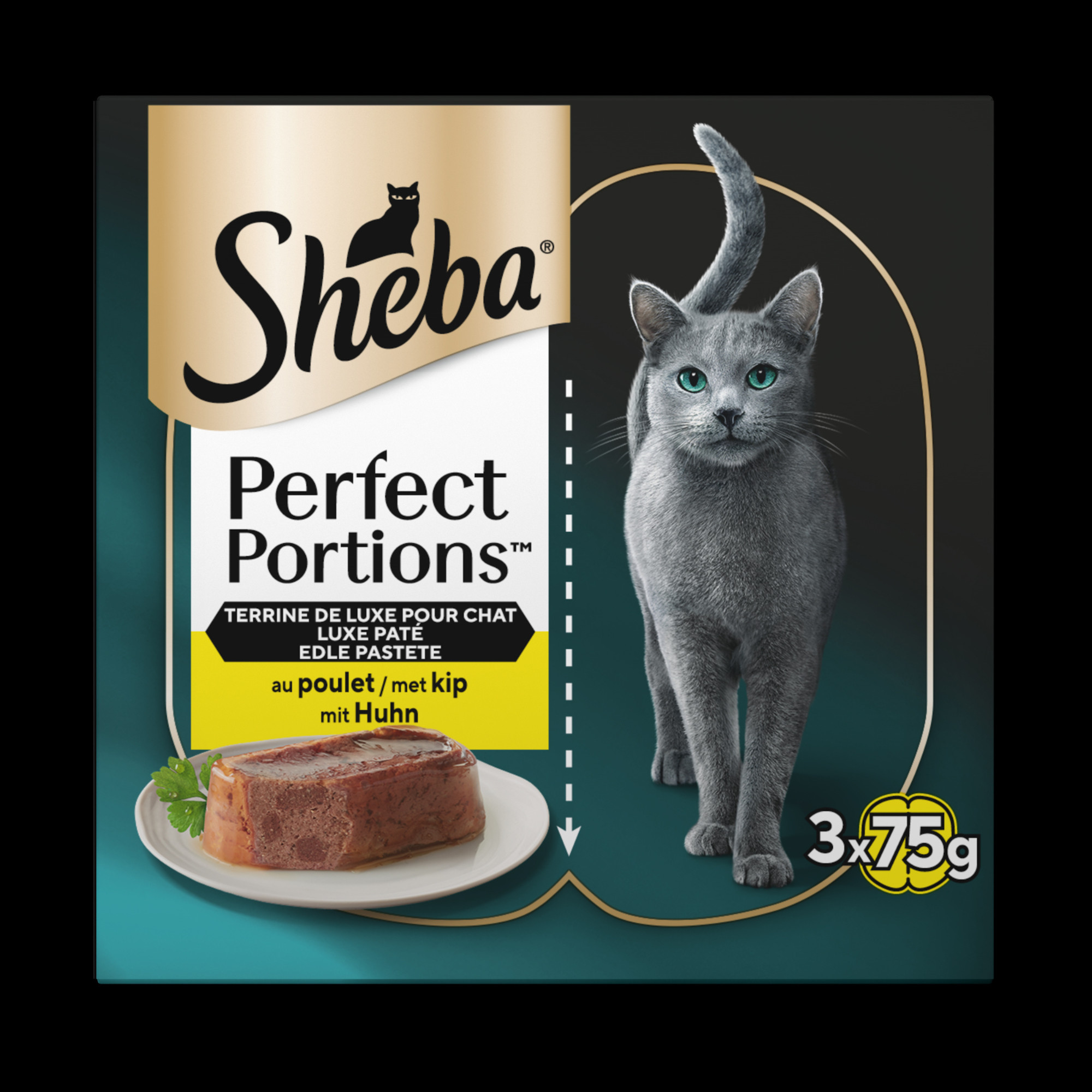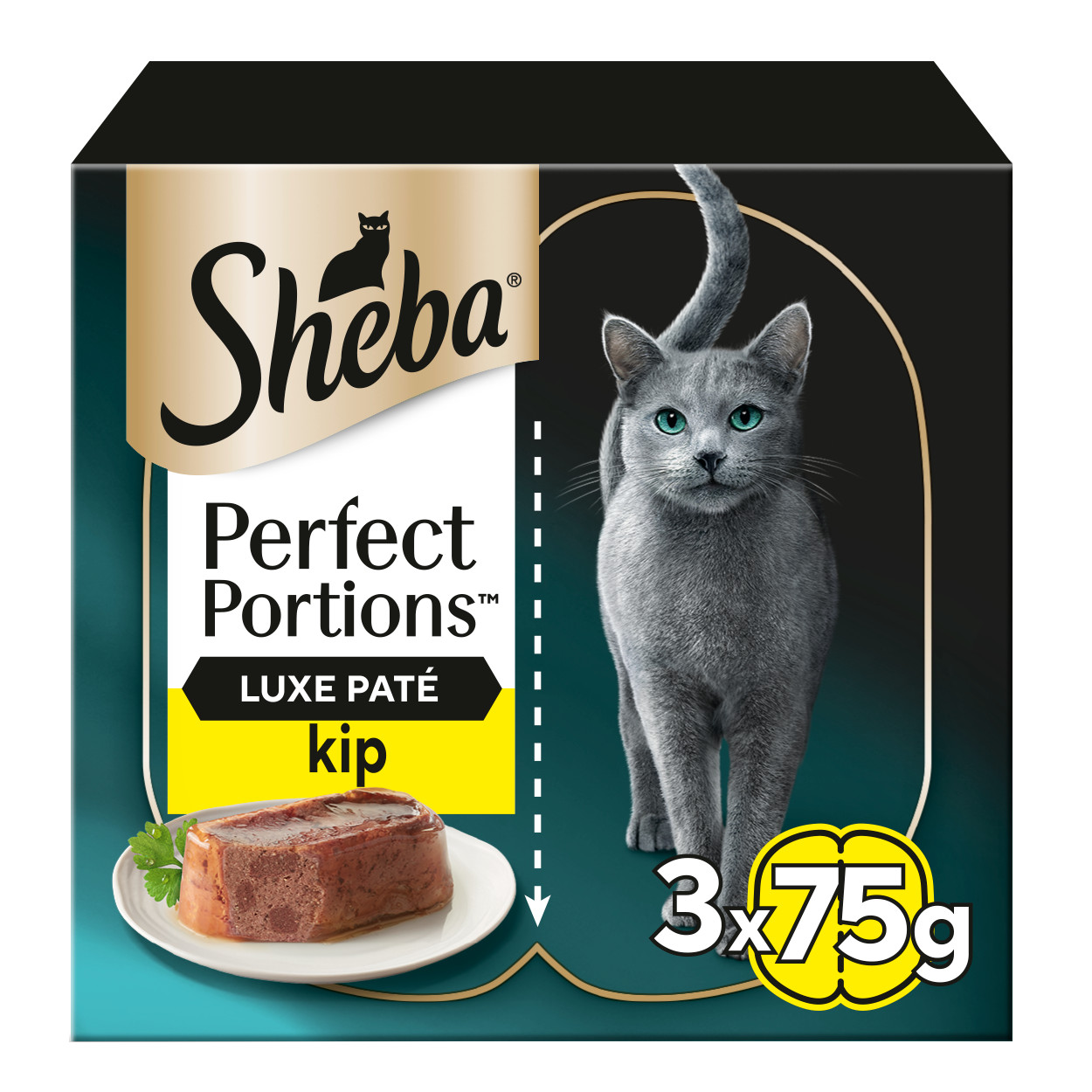 Sheba Perfect Portions luxe paté met kip natvoer kat is een smeuïge paté met de heerlijke smaak van kip. Verpakt in 3x75 gram.