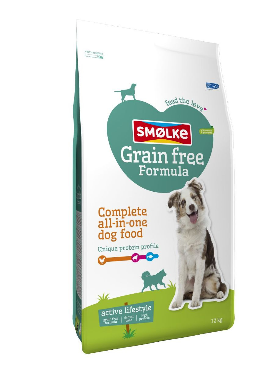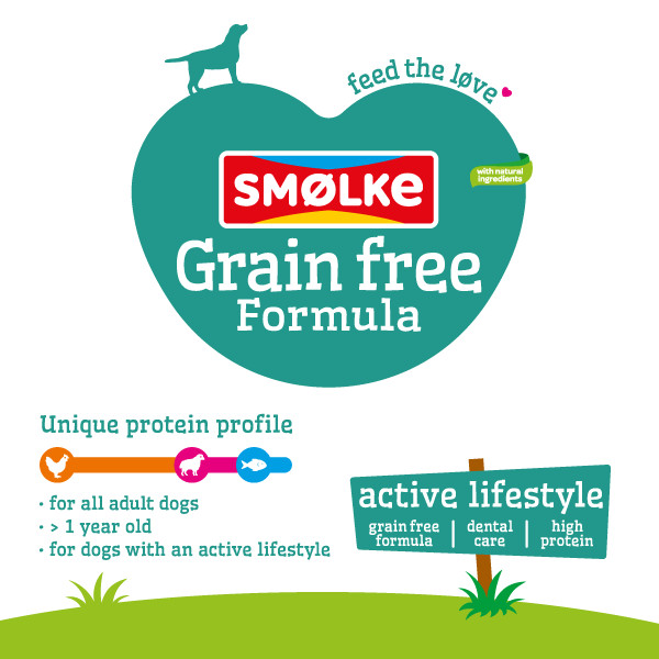 Om uw volwassen hond in een optimale conditie te houden is er Smølke Adult graanvrij hondenvoer. Deze complete alles-in-één voeding heeft een uniek eiwitprofiel uit hoogwaardige ingrediënten, zoals kip en lam en is nauwkeurig afgestemd op de voedingsbehoefte van de volwassen hond. De voeding is samengesteld zonder granen en is tevens vrij van kunstmatige geur-, kleur- en smaakstoffen. Bovendien maakt Smølke geen gebruik van chemische antioxidanten en conserveermiddelen. Smølke Grain Free Formula is een eerlijk product met natuurlijke ingrediënten en bevat extra eiwitten ter ondersteuning van de actieve hond. Bovendien helpen speciale mineralen de vorming van tandplak te beperken. Met Smølke graanvrij hondenvoer weet u zeker dat uw hond alles krijgt wat hij nodig heeft.