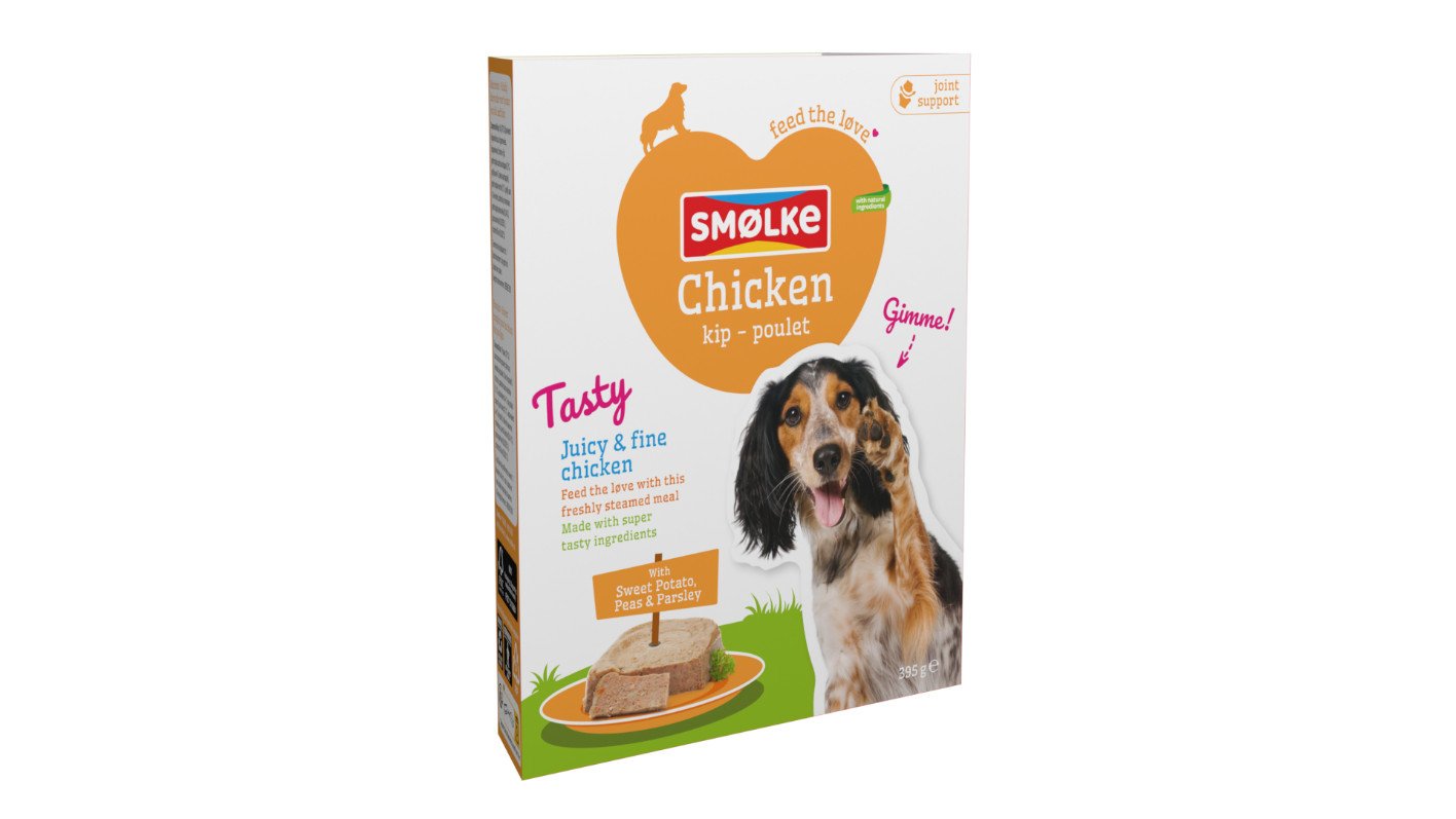 Bent u op zoek naar een verse maaltijd met natuurlijke ingrediënten voor uw hond? Smølke Tasty Chicken vers gestoomde kip natvoer hond is een complete en vers gestoomde maaltijd met kip als enige dierlijke eiwitbron. Deze natvoeding is dan ook zeer geschikt voor honden met een overgevoeligheid voor bepaalde eiwitten. Natvoer van Smølke is de ideale variatie op het dagelijkse menu van iedere hond, van jong tot oud. De verse ingrediënten wordt zachtjes gestoomd in een smaakvolle bouillon. Dit zorgt ervoor dat het vlees natuurlijk wordt geconserveerd en de voedingstoffen behouden blijven. Daarnaast kan Smølke Tasty Chicken ook prima aan pups gegeven worden. Deze volledige diervoeder bevat bruine rijst, groenten en kruiden voor een bijzondere smaakbeleving. Bovendien biedt het ondersteuning aan het immuunsysteem van uw viervoeter. Om te voorkomen dat uw hond uitgekeken raakt, kunt u deze voeding ook bestellen in de smaken lam, vis, eend en vers gestoomd wild. Voor wie niet kan of wil kiezen en zijn viervoeter graag wil verwennen met alle varianten, hebben wij tevens een extra voordelige combiverpakking met alle smaken!