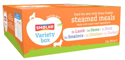 Smølke Tasty Variety Box combipack vers gestoomd natvoer hond is een handige combibox met 6 verschillende soorten vers gestoomd natvoer. In de box met The Best of Smølke vindt u de varianten wild, eend, lam, kip, kalkoen en Smølmix. De smølmix bevat een combi van vis, kip en lam, gecombineerd met een unieke groente- en kruidenmix.